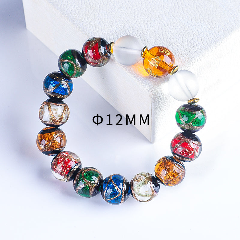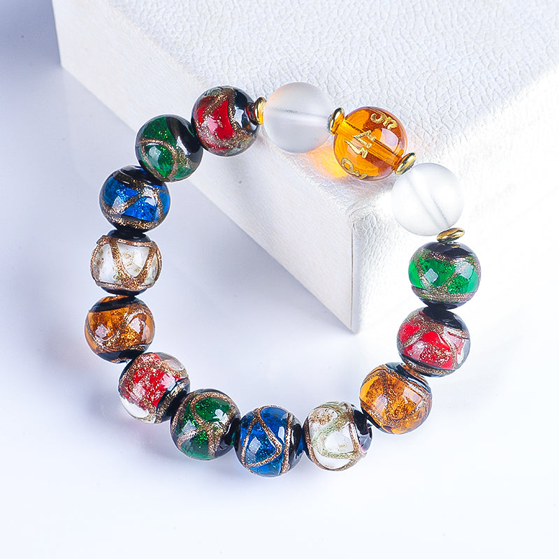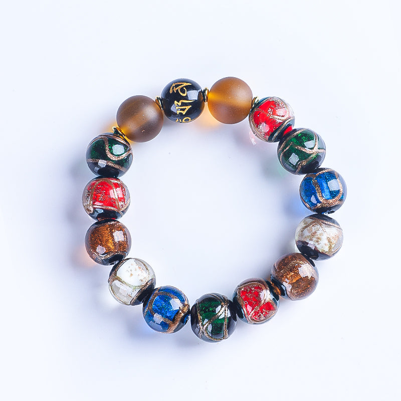 - Unique Design: This Incense - Ash Glazed Bead Bracelet stands out with its distinctive design. A variety of colorful, intricately - patterned glazed beads form the base, exuding an air of artisanal charm. At the center, a prominent bead inscribed with the Six - Syllable Mantra in golden characters serves as a powerful focal point, blending spirituality with style seamlessly.
