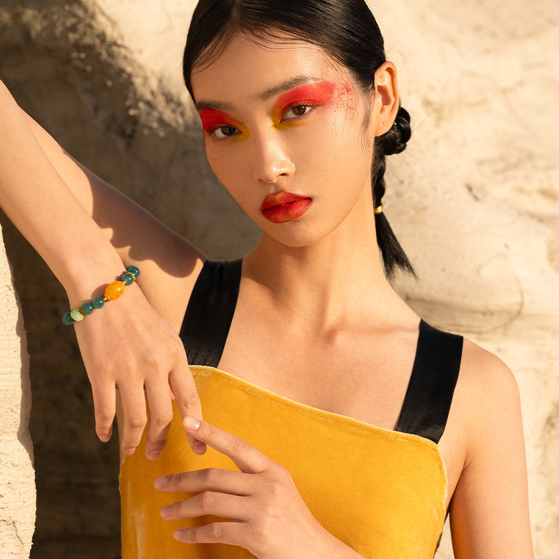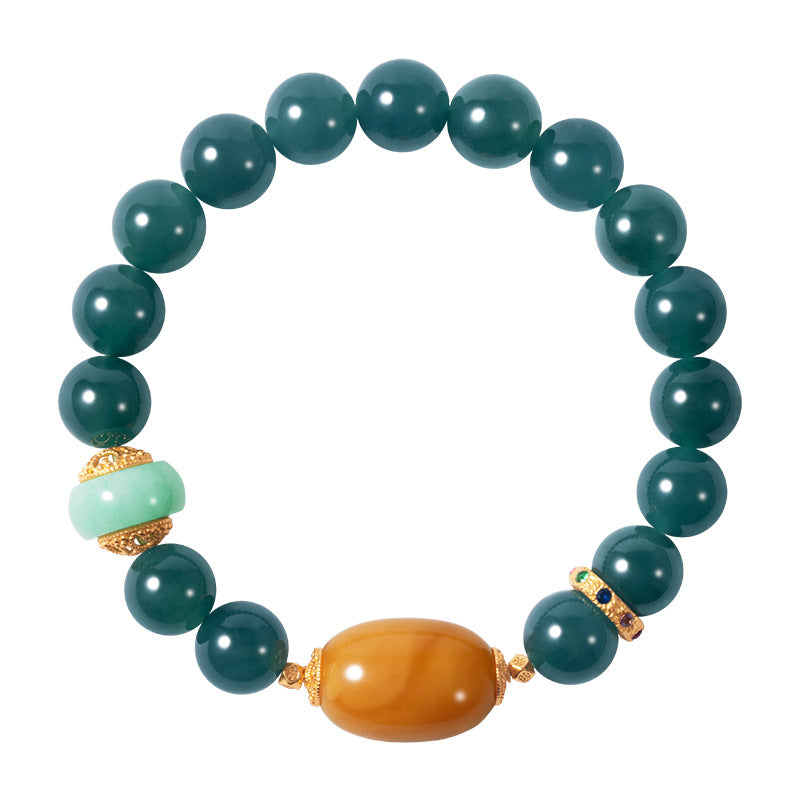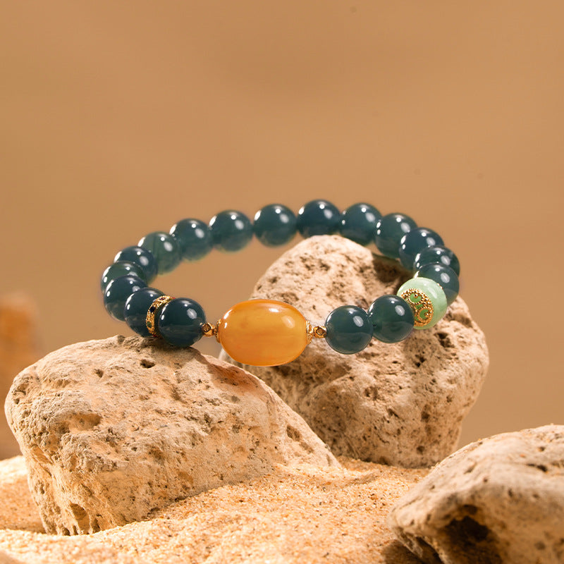 Azure Nephrite & Amber Silver-Gilt Bracelet - Harmony & Vitality