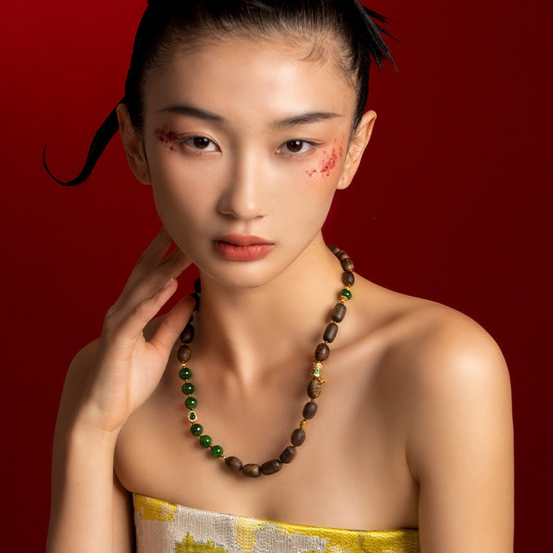 - Primary: Natural Qinan Agarwood Beads (10mm) – Symbolizing tranquility and spiritual grounding.