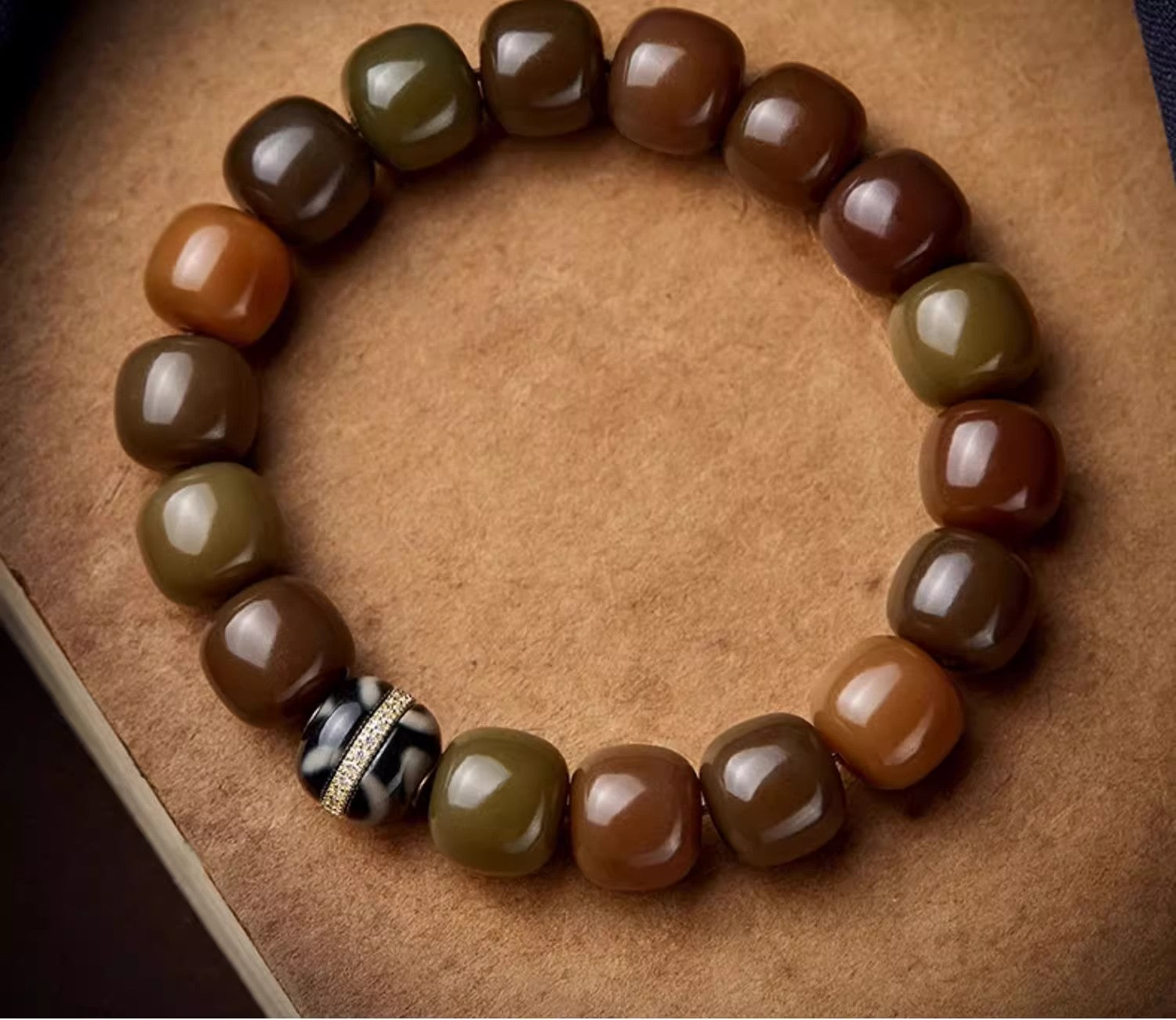 Dzi Agate & Tiger Bark Bodhi Bracelet - Wisdom & Vitality