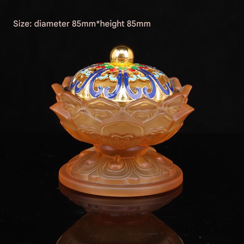 Infuse your space with serenity using this exquisite Lotus Aroma Burner. Designed with a diameter of 85mm and height of 85mm, it features a frosted glass base paired with a radiant golden lid.