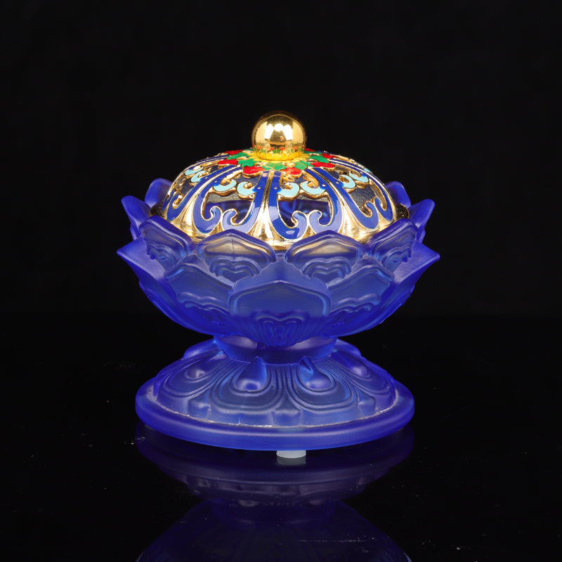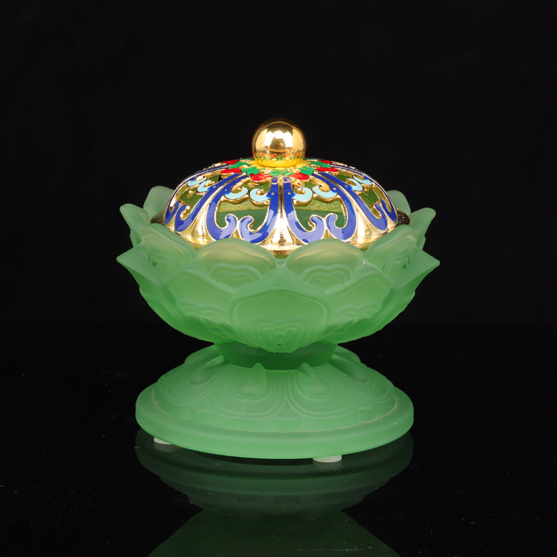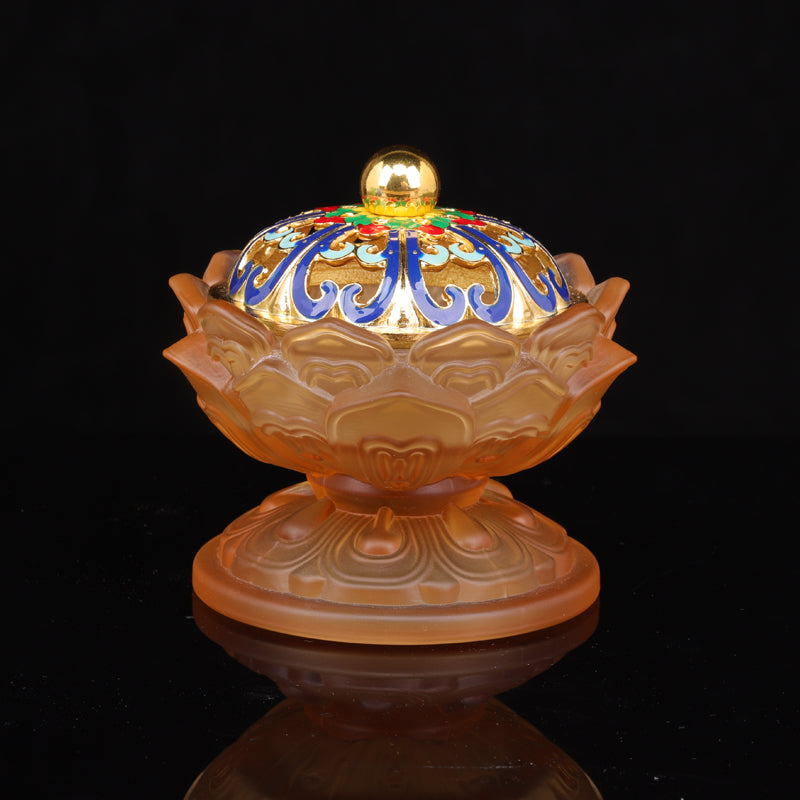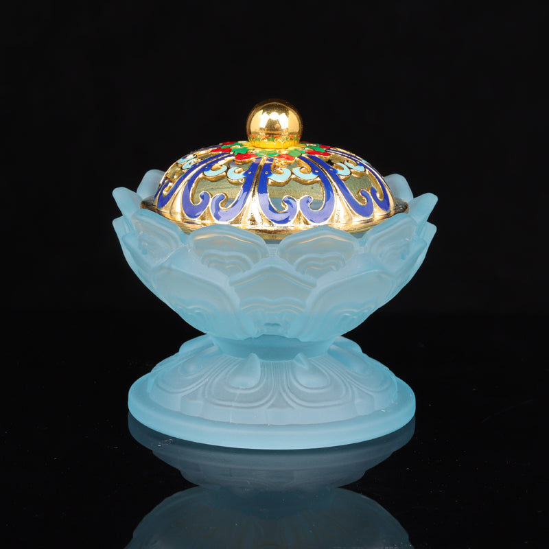 - Design: Frosted lotus petals complemented by a luxurious golden lid with vibrant enameled details.