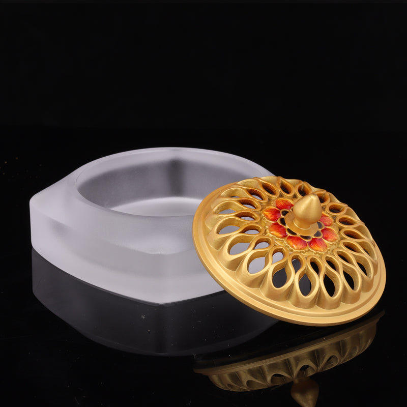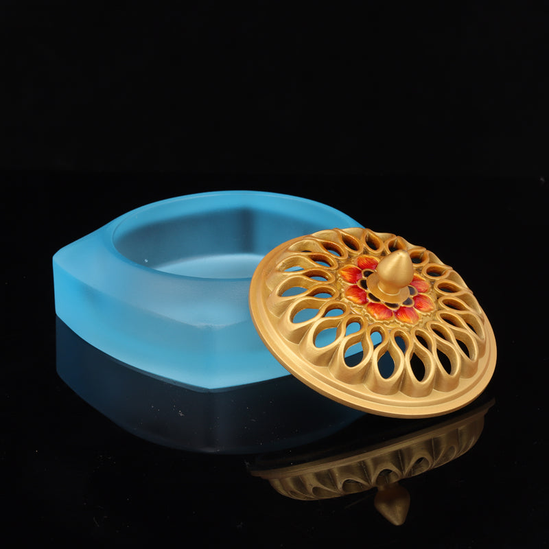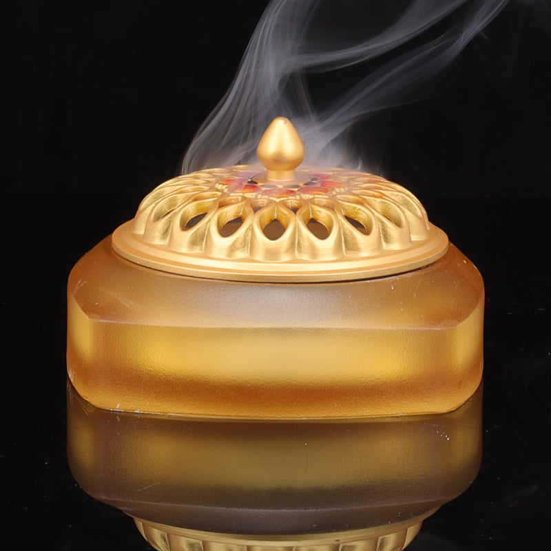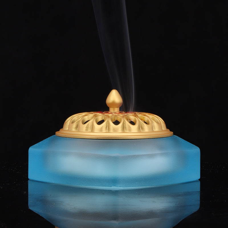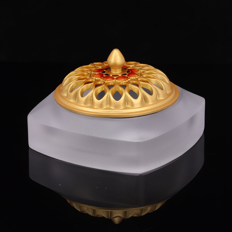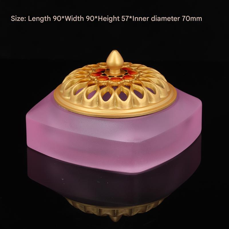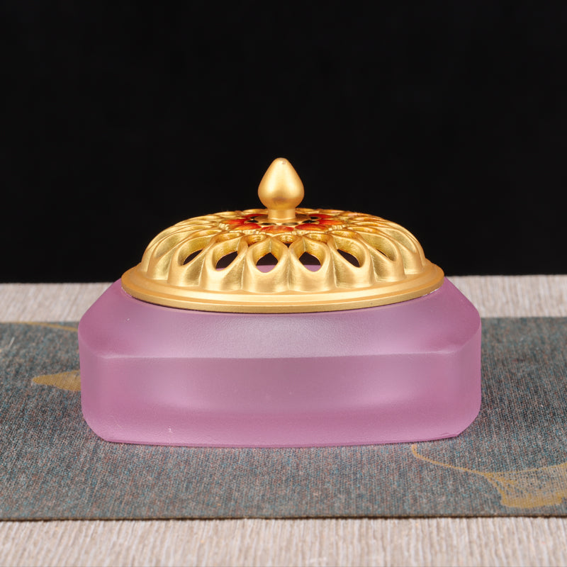 The Square Harmony Incense Burner combines traditional craftsmanship with a modern design. Featuring a frosted glass base in soft hues and a golden lotus-inspired lid, this piece creates a serene and elegant atmosphere for your home or meditation space.