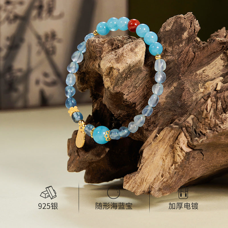 S925 Silver Blue Sea Stone & Nanhong Agate Bracelet - Calm & Prosperity