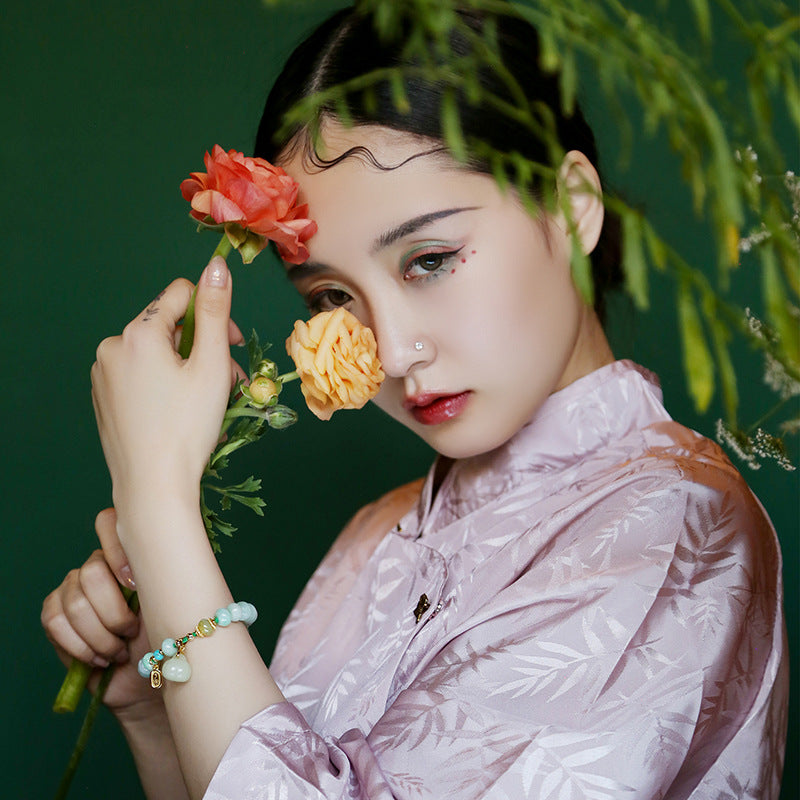 - Primary Gemstones: Natural Hetian White Jade (symbolizing purity and wisdom), Natural Nanhong Agate (vitality and prosperity).