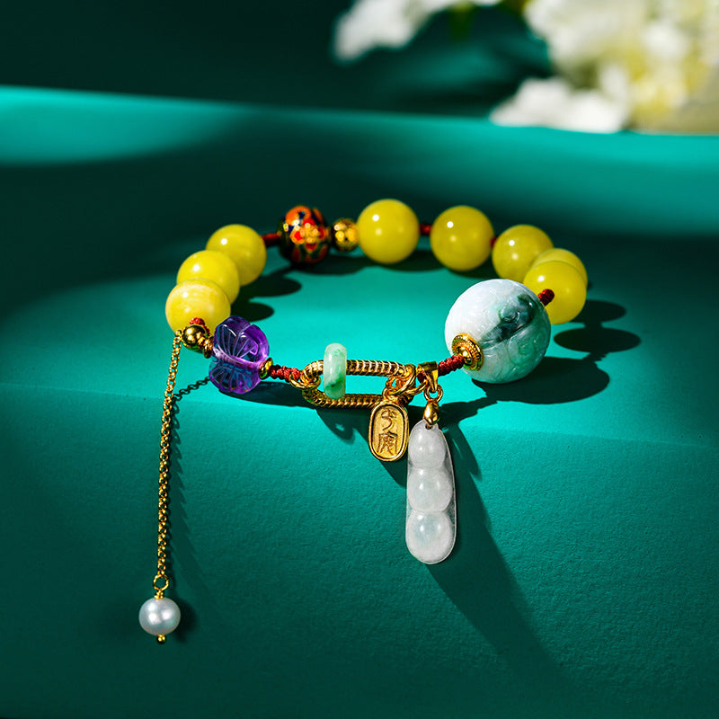 S925 Silver Jade & Amber Bracelet - Harmony & Vitality
