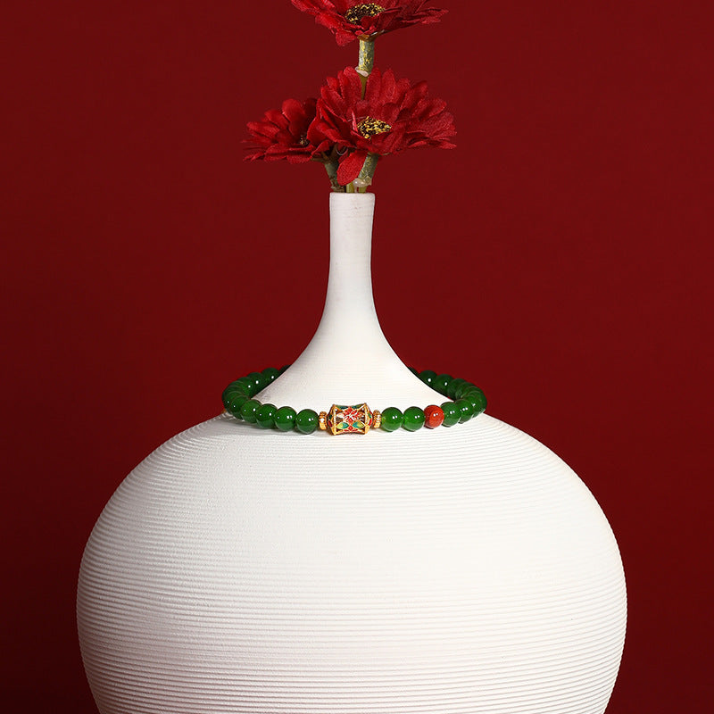 - Gemstones: Pakistan Red Enamel (symbolizing passion and vitality), Natural Hetian Jade (harmony), Natural Nanhong Agate (grounding energy).