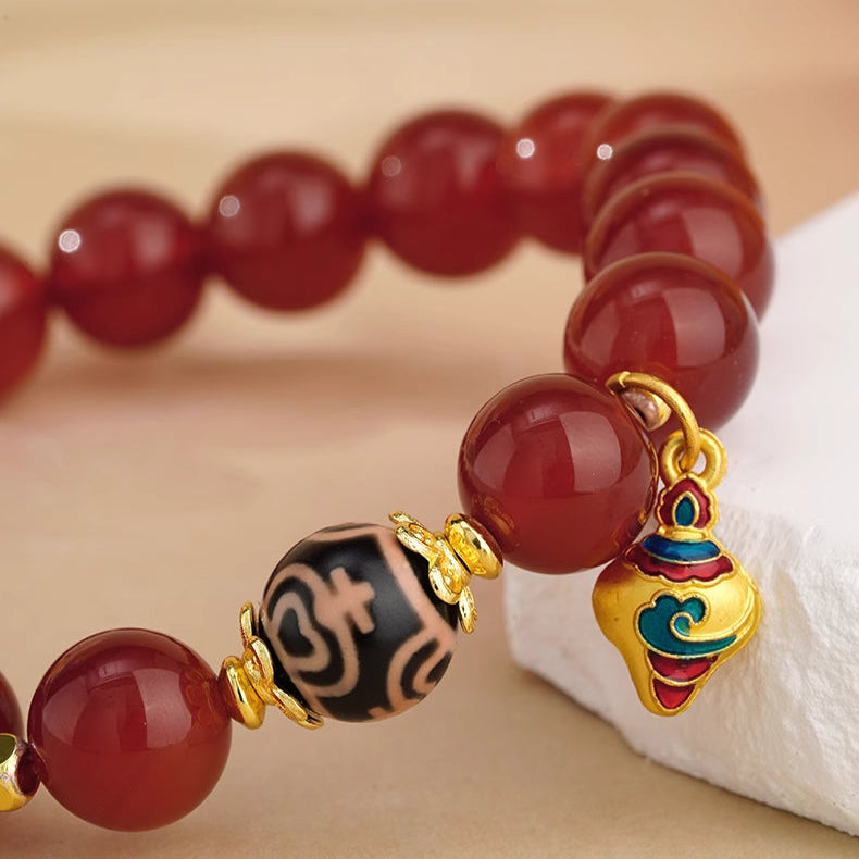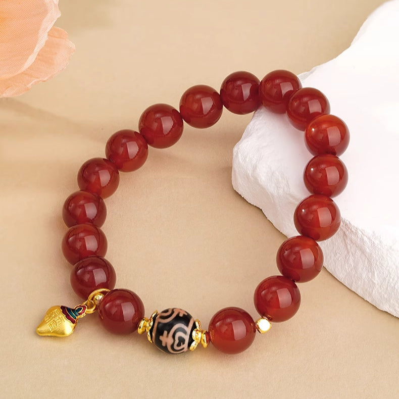 Tibetan Carnelian & Dzi Bead Talisman Bracelet - Prosperity & Vitality