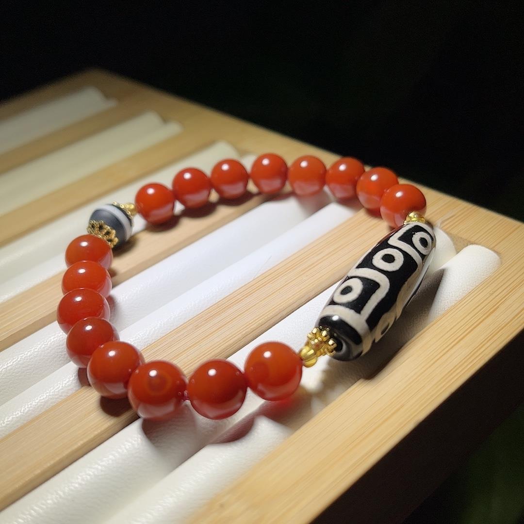 Tibetan Nine-Eye Dzi Agate Bracelet - Sacred Guard & Abundance